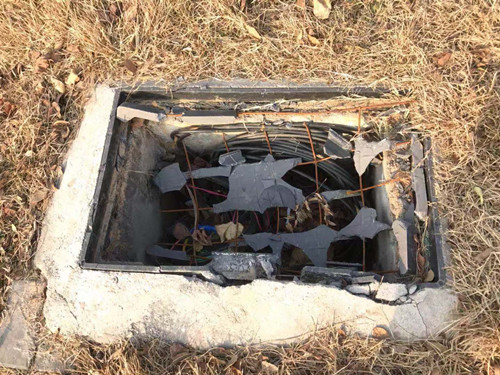再就是現在很多井蓋廠家為了降低成本,在井蓋里面加上石英砂,石英砂一種很便宜的沙料,它的吸水率是很大的,石英砂與樹脂在融合的過程中容易產生縫隙,在下雨或者下雪的時候容易進入水蒸氣,冬天凍住,夏天化開,這樣就使井蓋內部的間隙就越來越大,再加上車輛來回碾壓,就更加容易裂開,下圖的“紙皮井蓋”就是這樣來的。